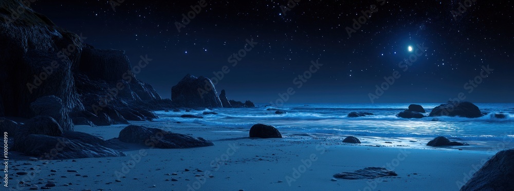 A Serene Night Beach Scene With Stars And Wallpaper Mural - Decorly Solutions | Decorly Solutions