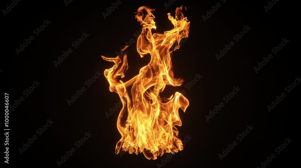 Fire Flames Isolated On Black Background, Movement Of Fire Flames
