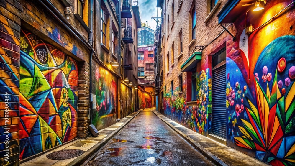 Narrow Alleyway With Vibrant Street Art And Textured Wallpaper Mural - Decorly Solutions | Decorly Solutions