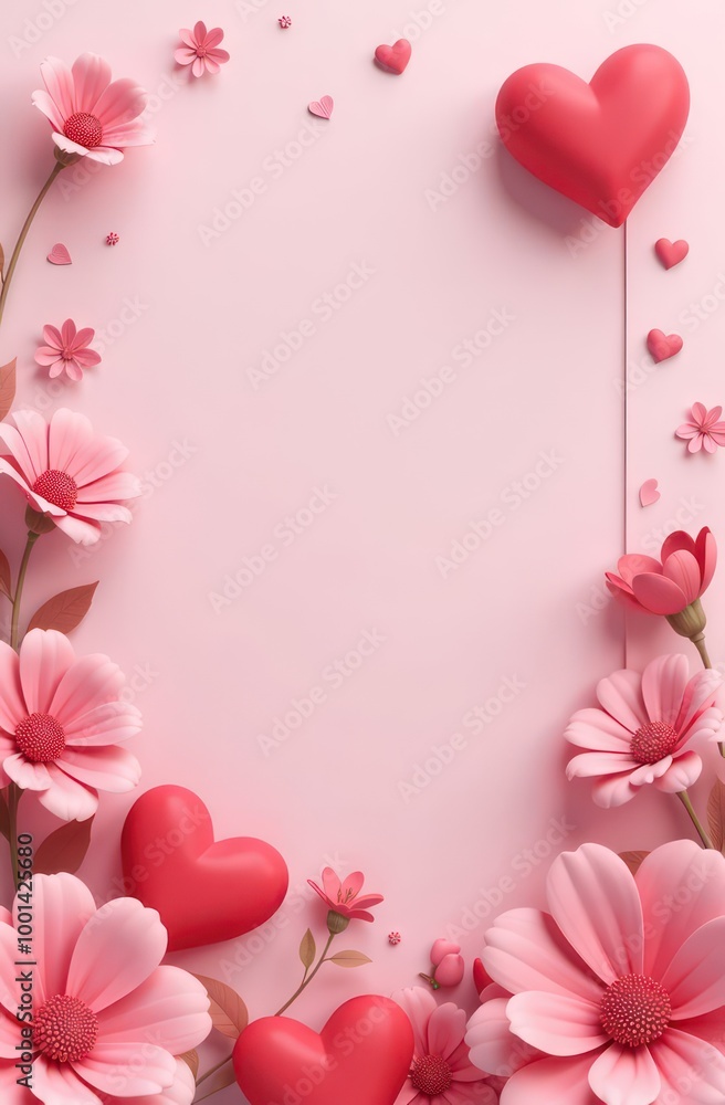 Creatively arranged pink flowers and hearts for a festive celebration