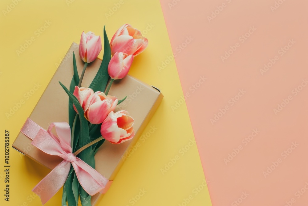 Elegant Gift Box With Pink Tulips And Ribbon Wallpaper Mural - Decorly Solutions | Decorly Solutions