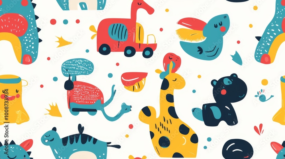 A Seamless Pattern Of Cute Cartoon Toys Kid Wallpaper Mural - Decorly Solutions | Decorly Solutions