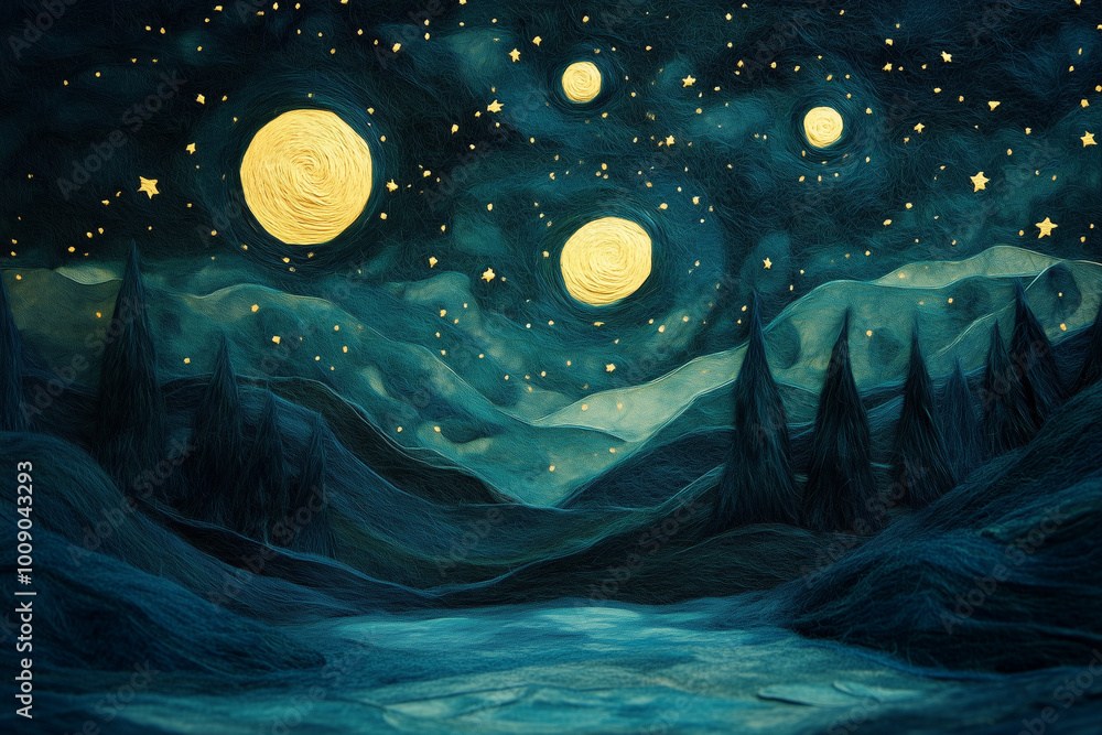 Landscape With Moon And Stars Starry Night Wallpaper Mural - Decorly Solutions | Decorly Solutions