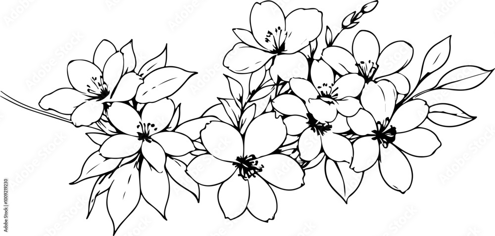 Elegant Cherry Blossom Line Drawing – Black & White Botanical Vector Art