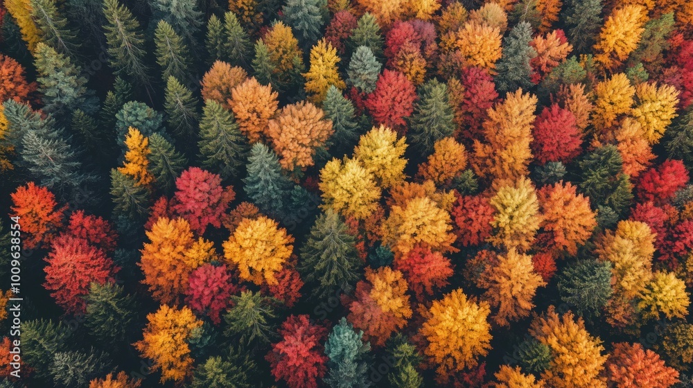 Vibrant Autumn Forest Colors Diverse Foliage Aerial View Wallpaper Mural - Decorly Solutions | Decorly Solutions