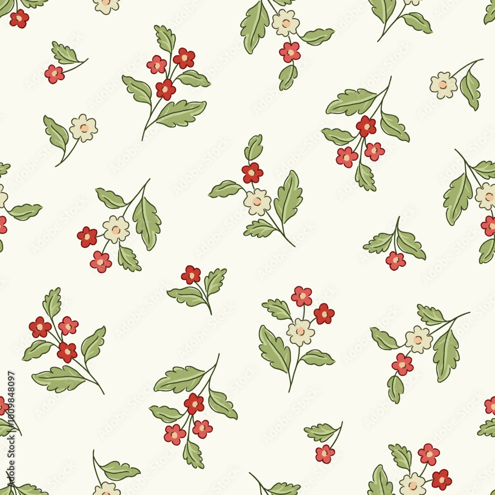 Retro Christmas Petit Twigs And Flowers Vector Seamless Wallpaper Mural - Decorly Solutions | Decorly Solutions