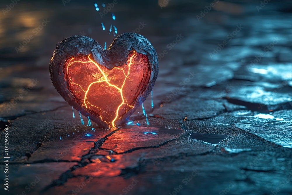 A Cracked Stone Heart Glowing With Internal Fire Wallpaper Mural - Decorly Solutions | Decorly Solutions