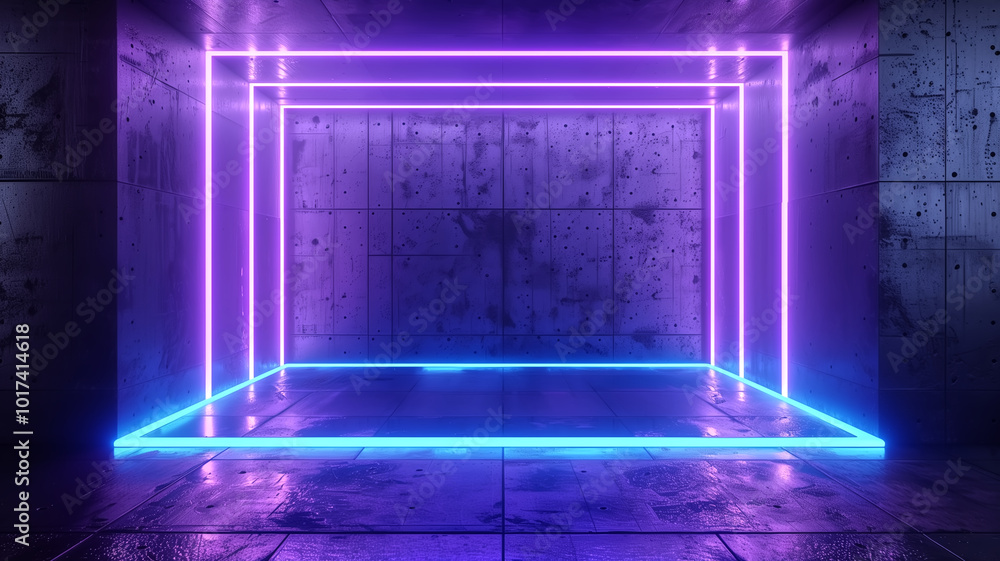 Futuristic Space Featuring Glowing Neon Blue And Purple Wallpaper Mural - Decorly Solutions | Decorly Solutions