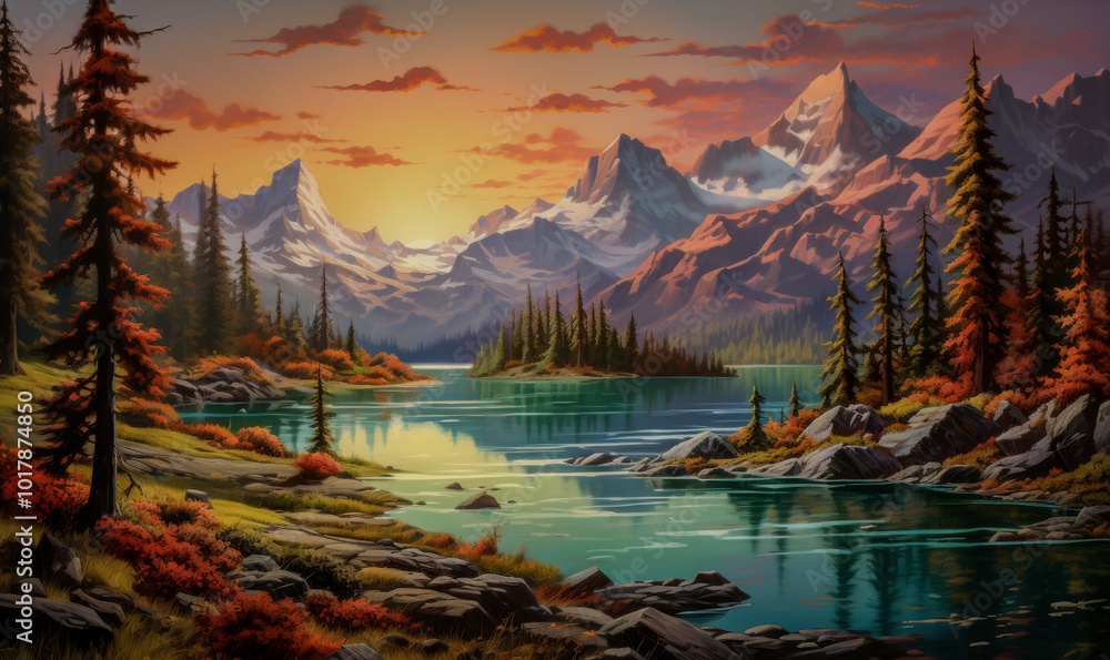 Beautiful Sunset Over A Serene Mountain Landscape Featuring Wallpaper Mural - Decorly Solutions | Decorly Solutions