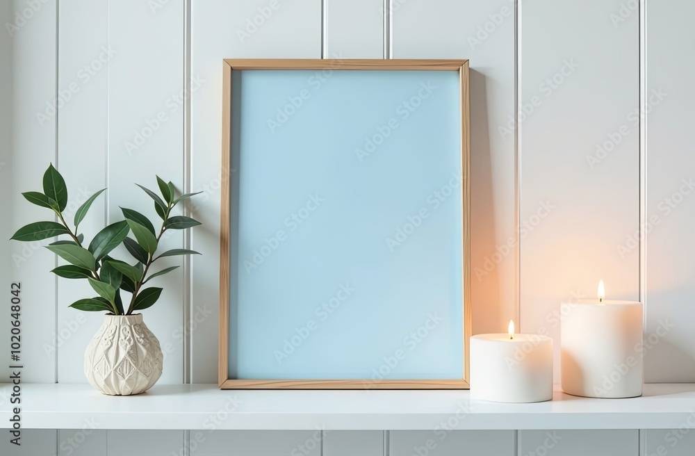 Wooden Photogram With Blue Background Stands On White Wallpaper Mural - Decorly Solutions | Decorly Solutions