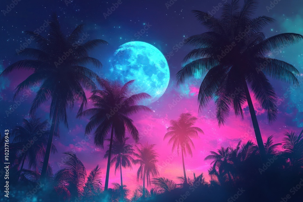 Colorful Night Sky With Palms And Moon Wallpaper Mural - Decorly Solutions | Decorly Solutions