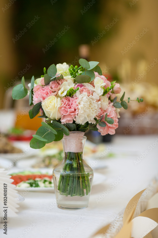 Closeup Of Flowers Bouquet At Luxury Wedding Reception Wallpaper Mural - Decorly Solutions | Decorly Solutions