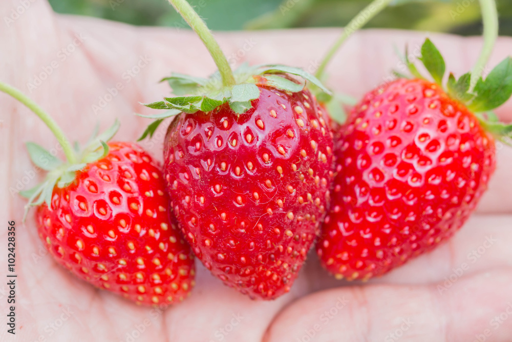 Ripe Red Strawberries On Vine, Soil Background, Healthy Food