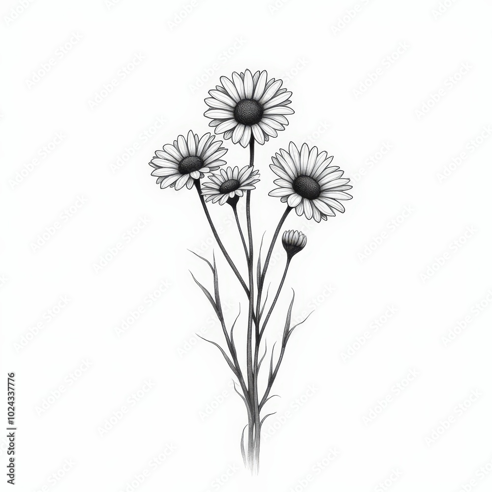 Hand Drawn Black And White Daisy Flower Bouquet Wallpaper Mural - Decorly Solutions | Decorly Solutions