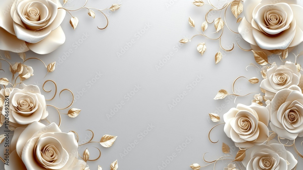 Elegant floral design featuring cream roses and gold accents Wallpaper