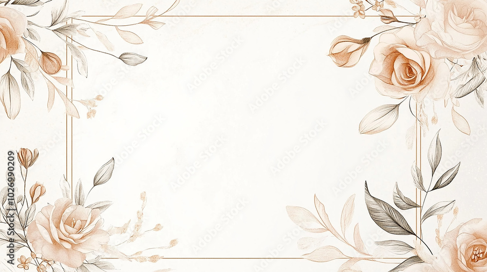 Watercolor Floral Frame With Beige Roses And Leaves Wallpaper Mural - Decorly Solutions | Decorly Solutions