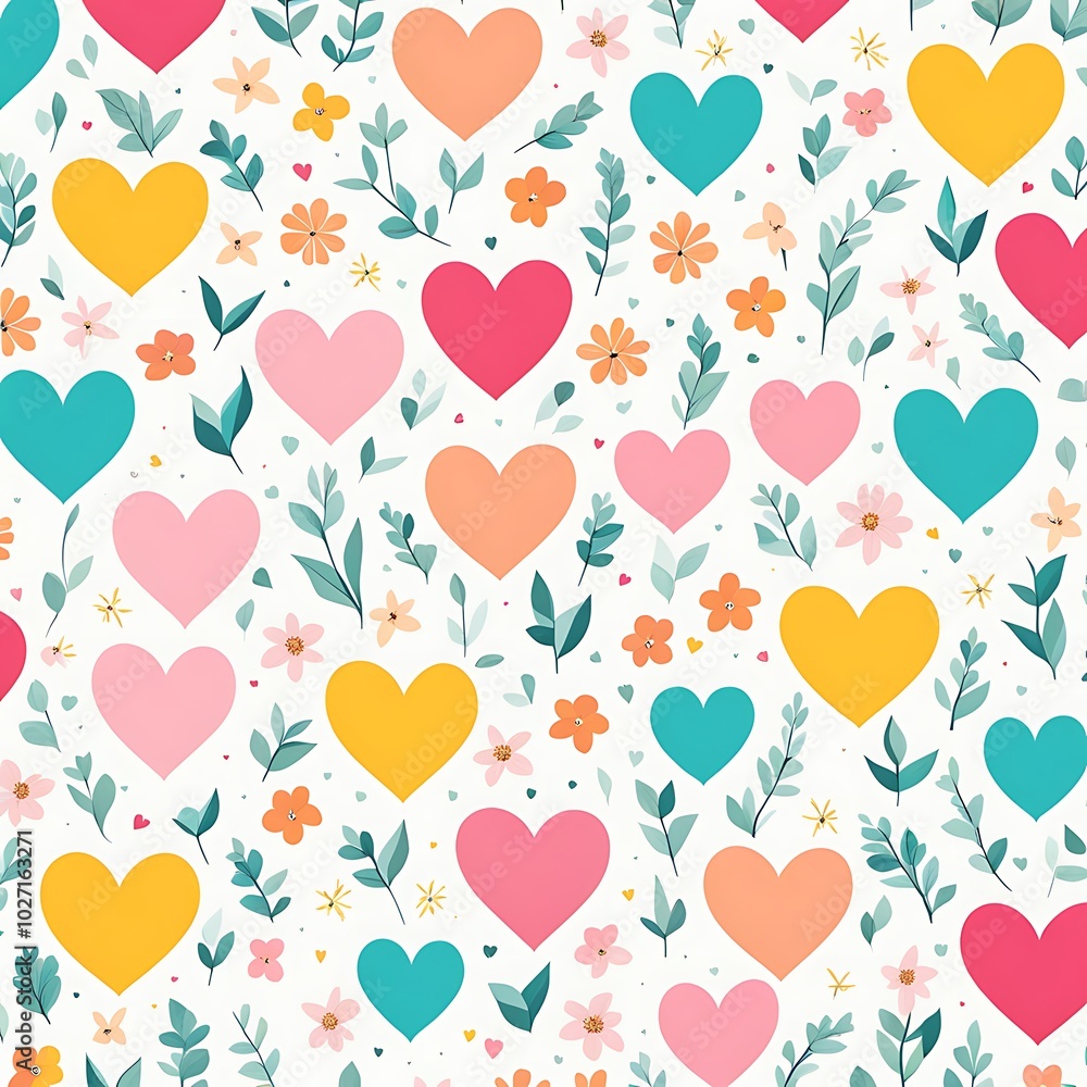 Colorful Heart And Flower Pattern Design Wallpaper Mural - Decorly Solutions | Decorly Solutions