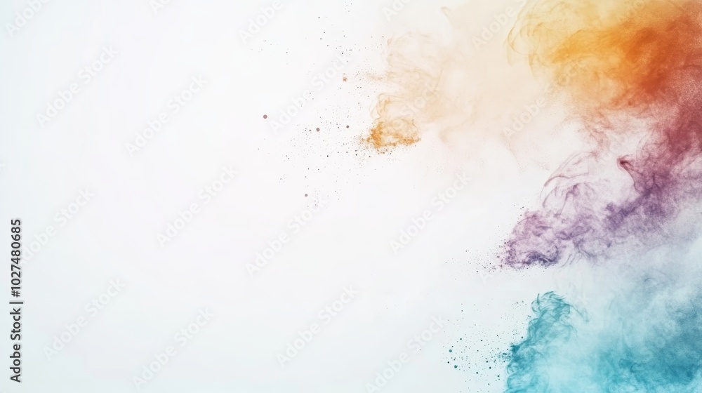 Abstract watercolor splatter background with pastel green, pink, yellow, and orange colors. Ideal for creative design, invitations, and artistic projects. Perfect for adding a soft, artistic touch.