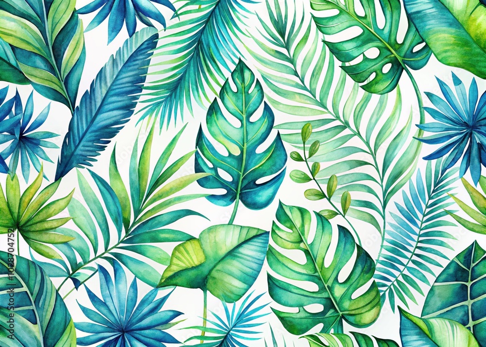 Tropical Watercolor Palm Leaves Pattern for Summer Decor and Wallpaper