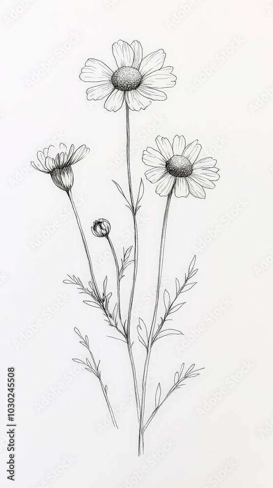 Сhamomile Detailed Hand Drawn Line Art Botanical Daisy Wallpaper Mural - Decorly Solutions | Decorly Solutions