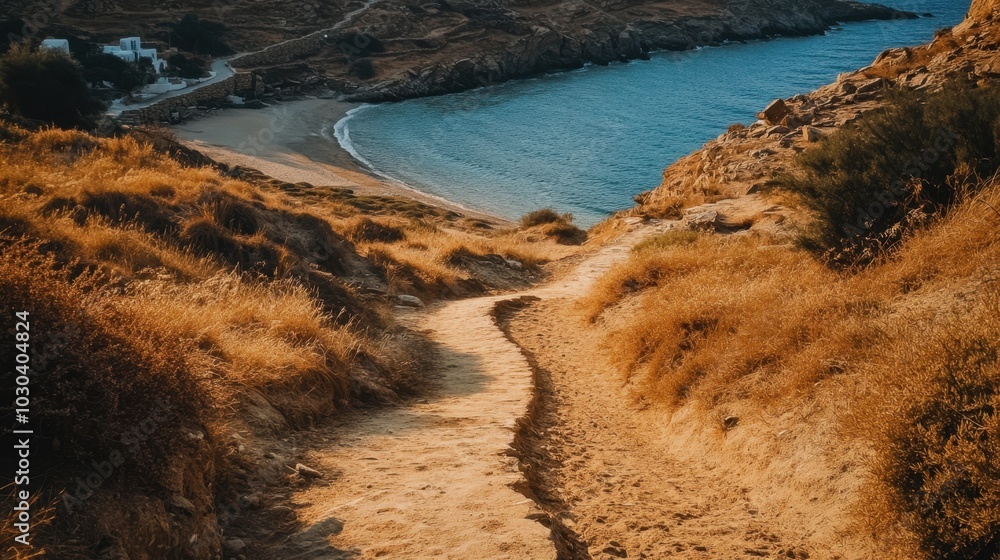 Golden Sunset Path To Secluded Beach Cove Wallpaper Mural - Decorly Solutions | Decorly Solutions