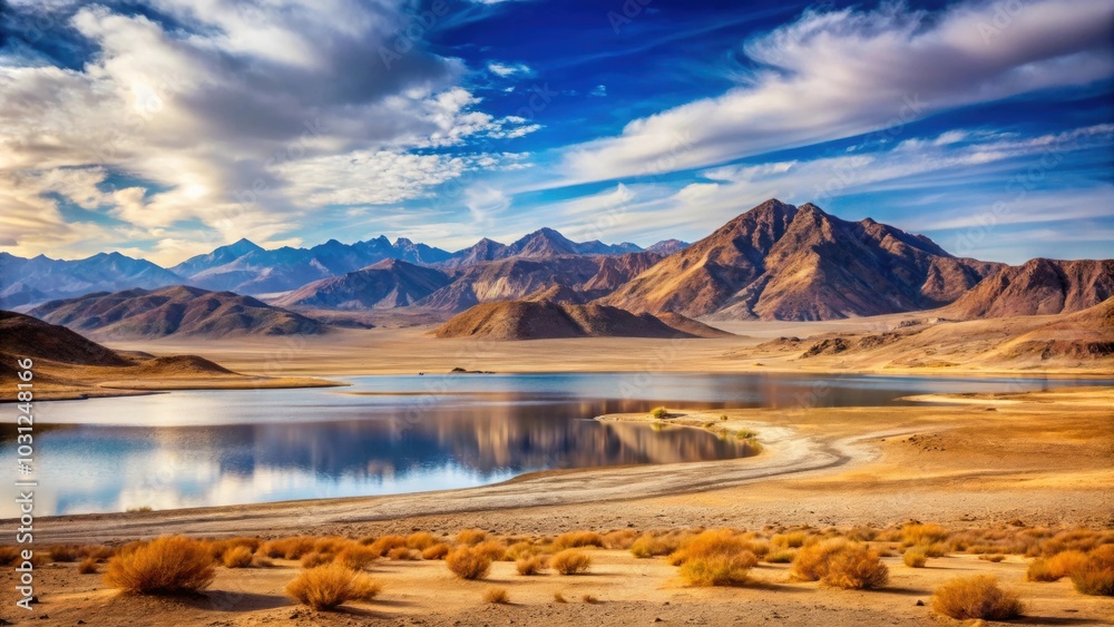Landscape With Mountains Lake And Dried Desert Global Wallpaper Mural - Decorly Solutions | Decorly Solutions