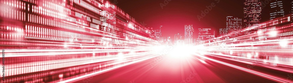 Neon Cityscape Illuminated At Night With Bright Light Trails