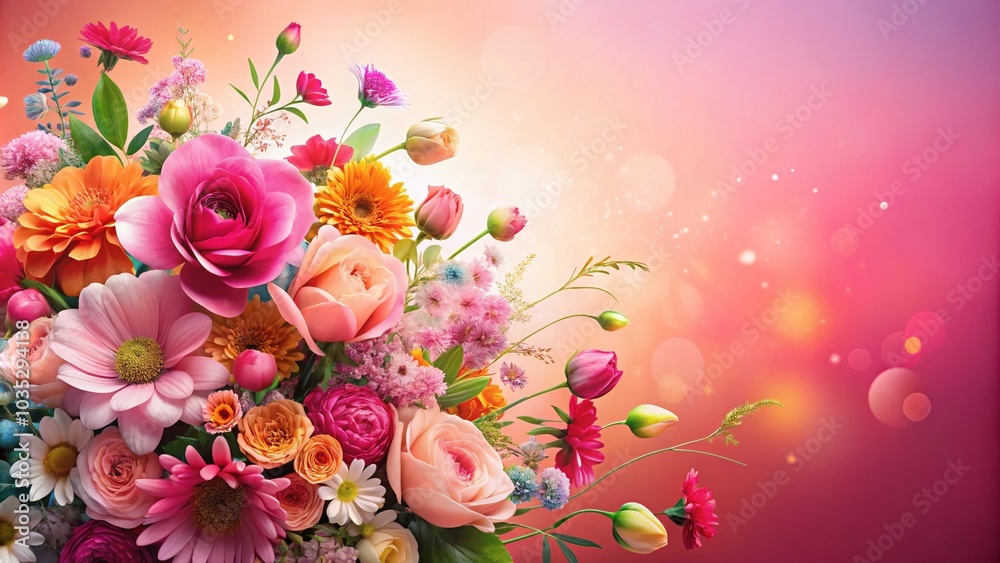 Beautiful Floral Composition On Pastel Pink Background For Wallpaper Mural - Decorly Solutions | Decorly Solutions