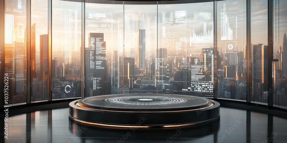 A sleek polished podium set in the center of a sophisticated Wallpaper