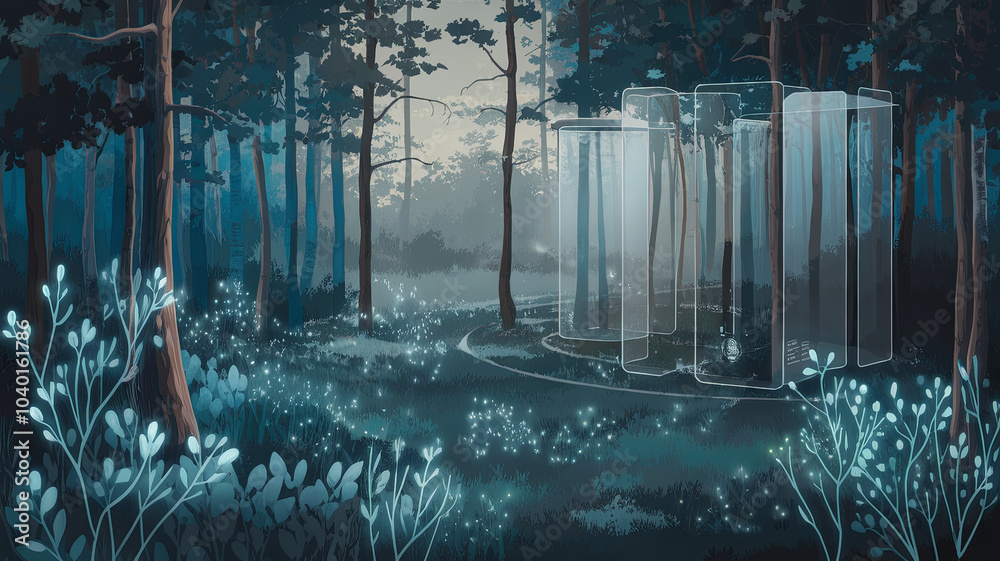 Serene Forest With Bioluminescent Plants Glowing Softly Under Wallpaper Mural - Decorly Solutions | Decorly Solutions