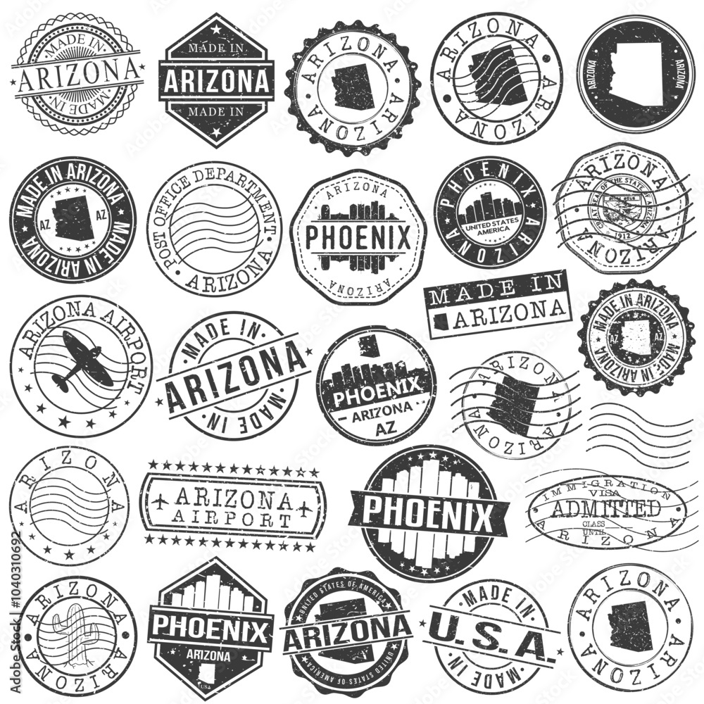 Phoenix Arizona Stamp Vector Art Postal Passport Travel Wallpaper Mural - Decorly Solutions | Decorly Solutions