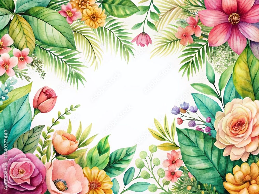 Watercolor Flower and Botanical Leaves Frame Background for Wallpaper