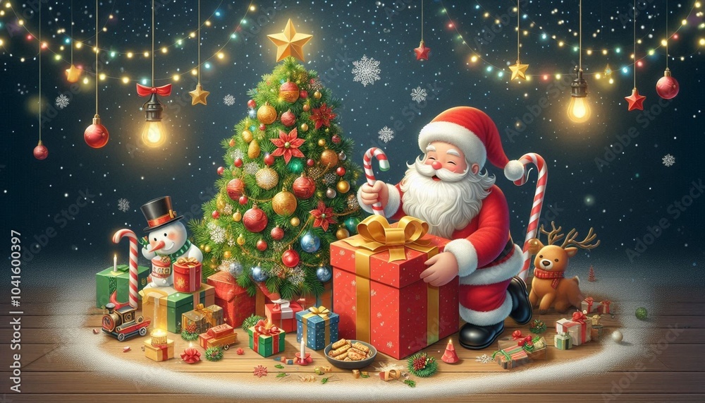Christmas Day With Gift Box And Santa Claus Wallpaper Mural - Decorly Solutions | Decorly Solutions