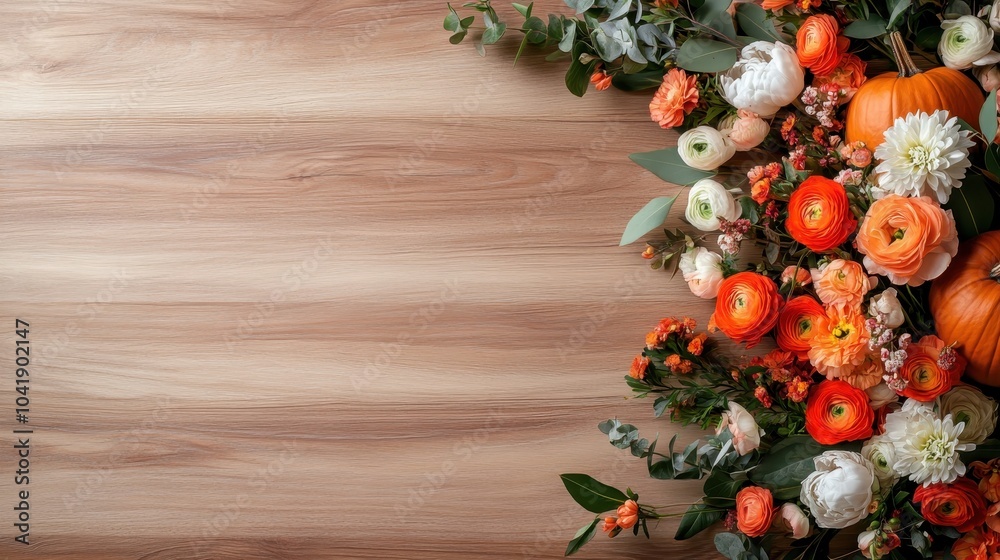 A vibrant arrangement of autumn flowers and small pumpkins a Wallpaper