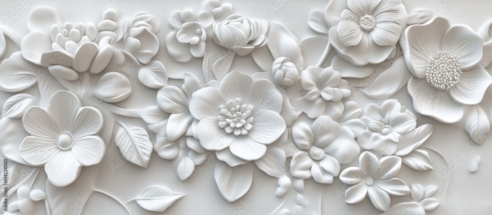 Ornate White Floral Bas-relief. Detailed Floral Carvings. Possible Use Home Decor Design, Crafting Ideas