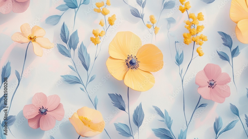 Floral Pattern With Yellow And Pink Blooms Wallpaper Mural - Decorly Solutions | Decorly Solutions