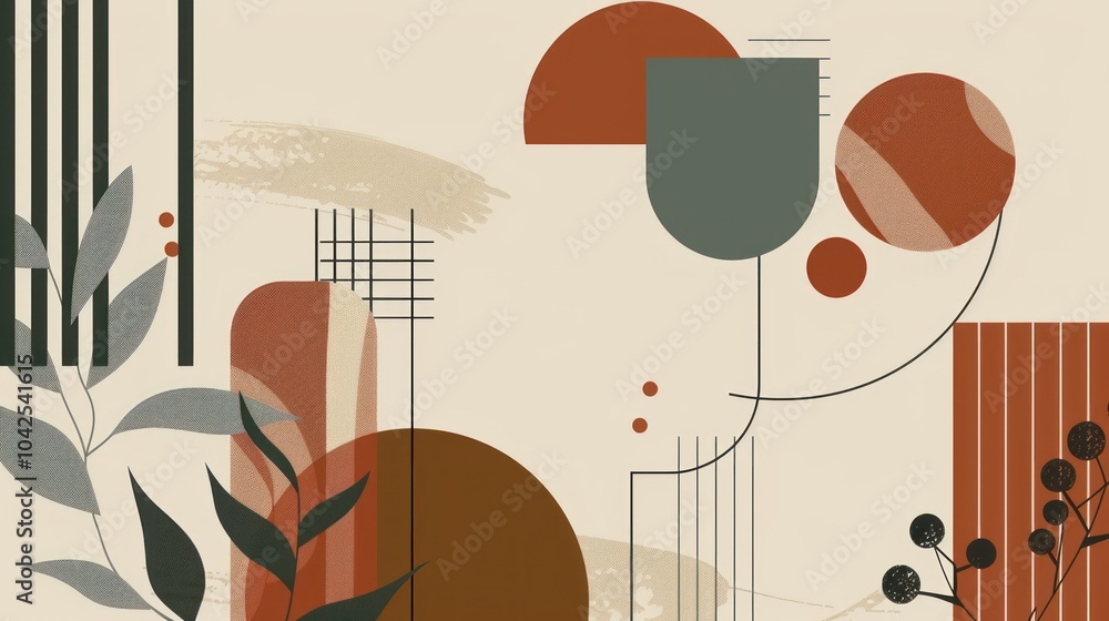 Abstract Geometric Patterns with Leaves and Bold Colors Design