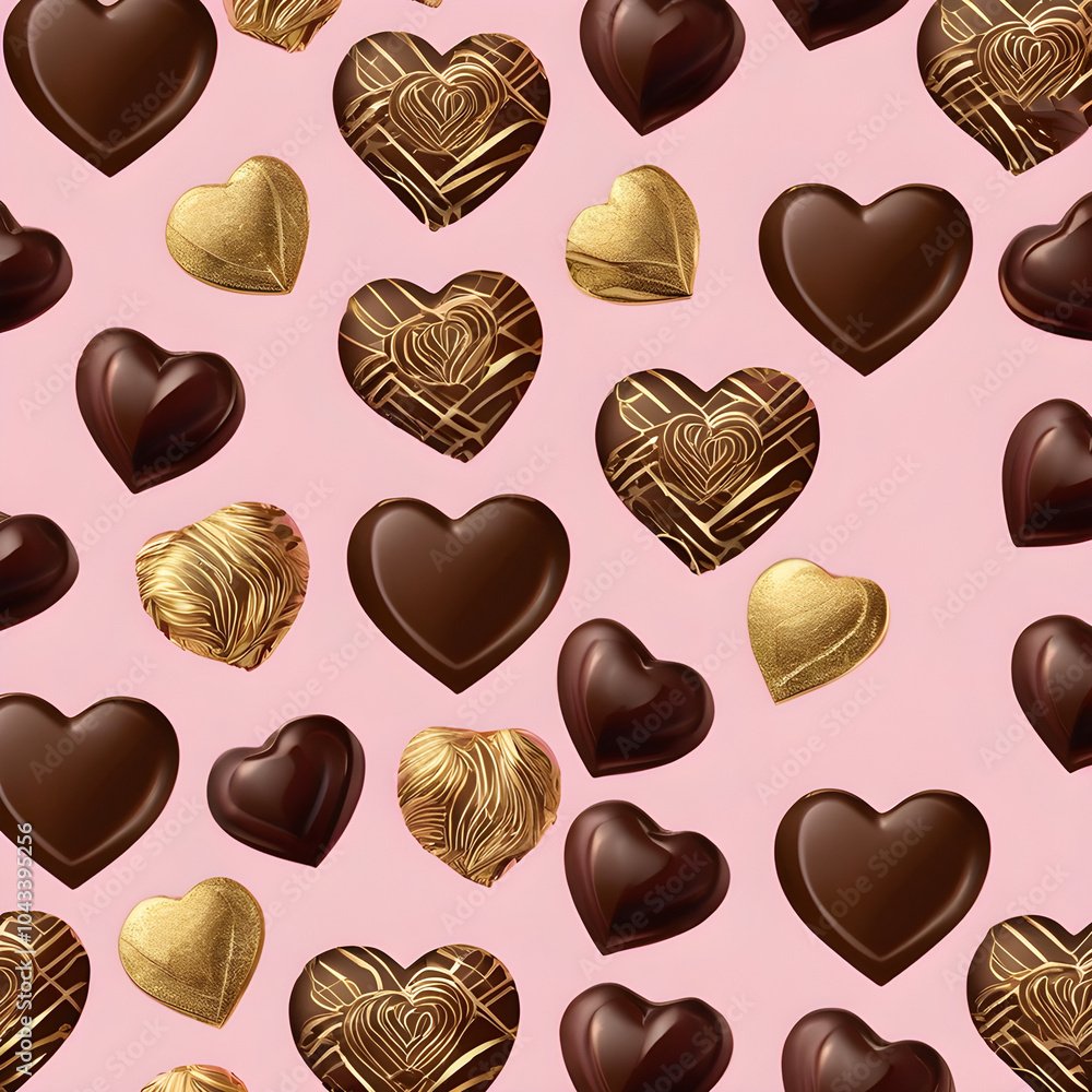 Watercolor Seamless Pattern Of Chocolate Hearts In Gold Wallpaper Mural - Decorly Solutions | Decorly Solutions