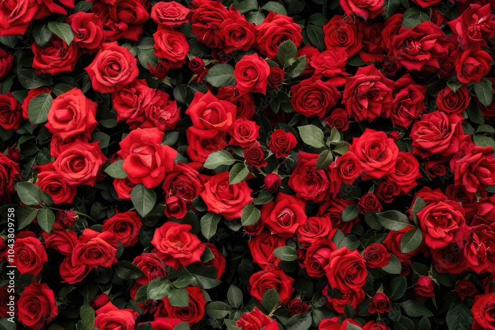 A Beautiful Wall Crafted From Vibrant Red Roses Wallpaper Mural - Decorly Solutions | Decorly Solutions
