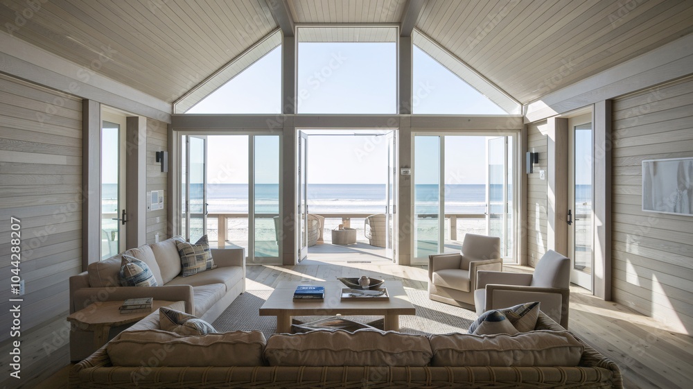 Coastal Beach Modern Living Room With A Coastal View.