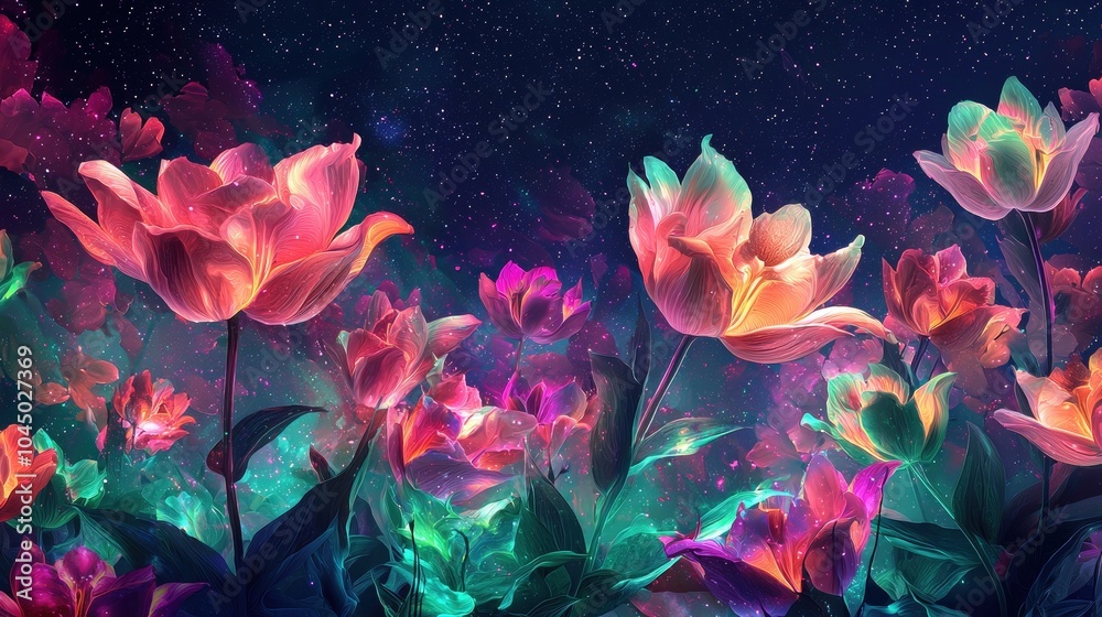 Ethereal Floral Landscape With Aurora Borealis Illuminating The Wallpaper Mural - Decorly Solutions | Decorly Solutions