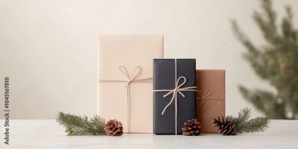 Elegant Gift Boxes With Natural Decor On A Wallpaper Mural - Decorly Solutions | Decorly Solutions