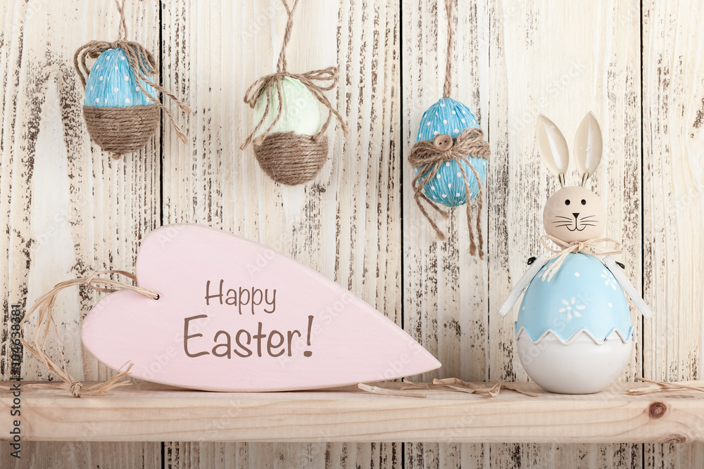 Happy easter banner template. Poster with bright painted Easter eggs. Festive background. Vector illustration. Design layout for invitation, card, flyer, voucher, sale advertising, social media