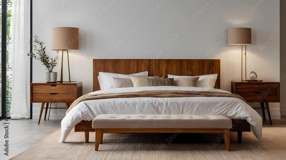 Bedroom With Bed And Pillows Wallpaper Mural - Decorly Solutions | Decorly Solutions
