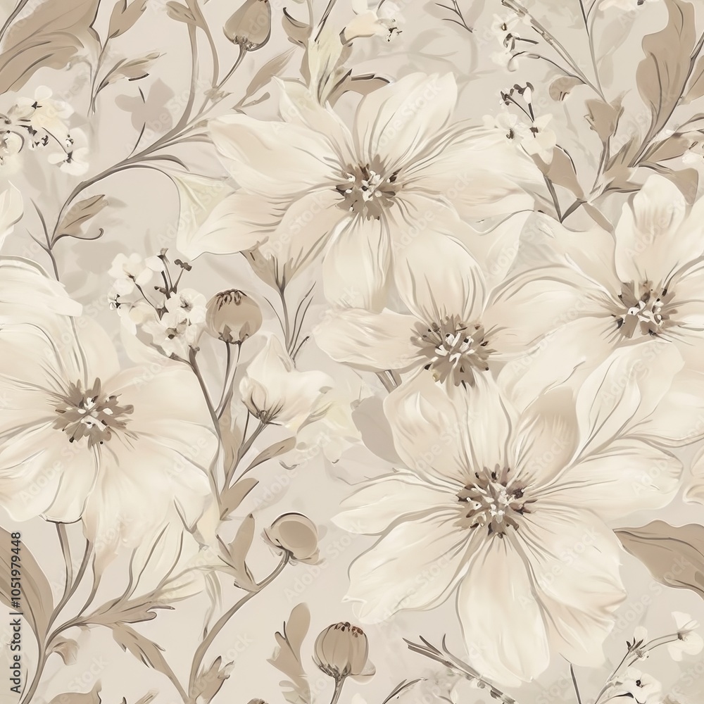 Seamless Delicate Floral Pattern In Soft Cream And Wallpaper Mural - Decorly Solutions | Decorly Solutions