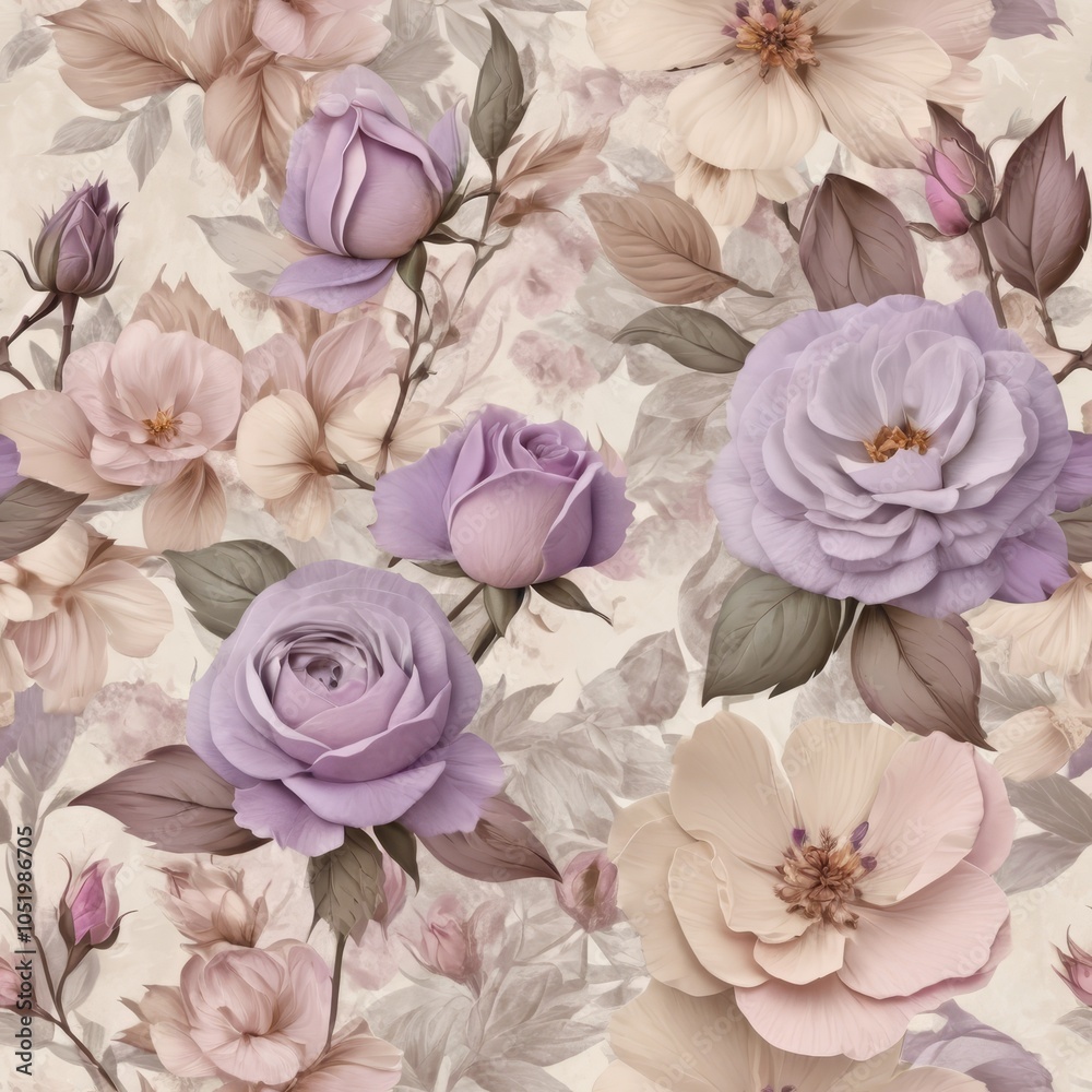 Seamless Texture Of Vintage Flowers In Lavender Light Wallpaper Mural - Decorly Solutions | Decorly Solutions