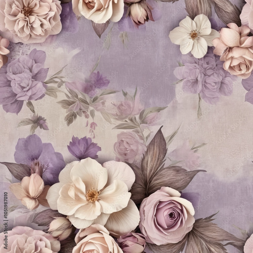Seamless Texture Of Vintage Flowers In Lavender Light Wallpaper Mural - Decorly Solutions | Decorly Solutions