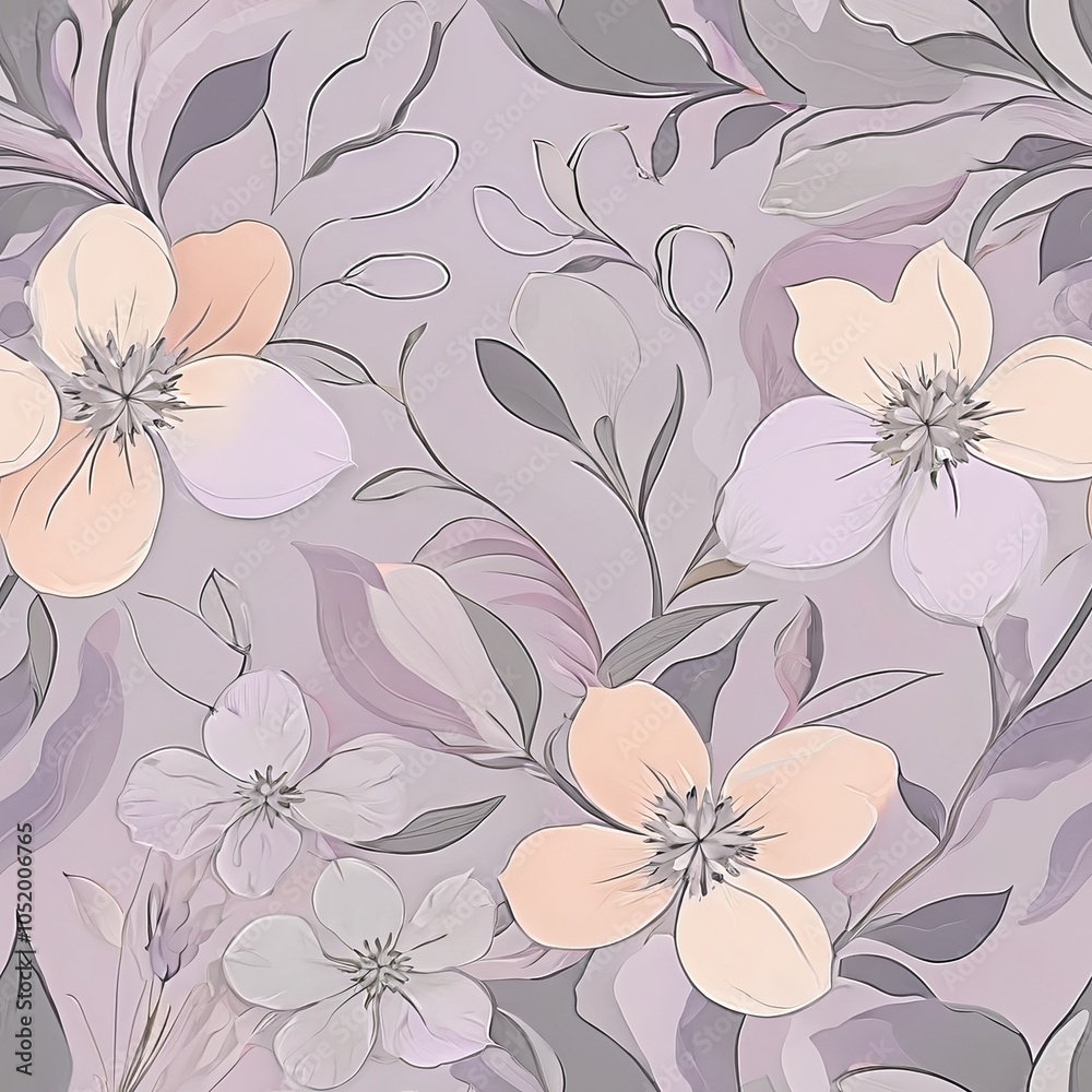 Seamless Whimsical Floral Pattern With Soft Lavender Peach Wallpaper Mural - Decorly Solutions | Decorly Solutions