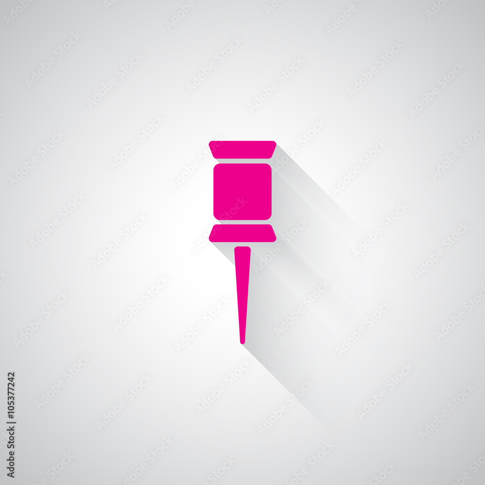 Pink telephone receiver on the wall in a minimalistic room with light fixtures and a modern design