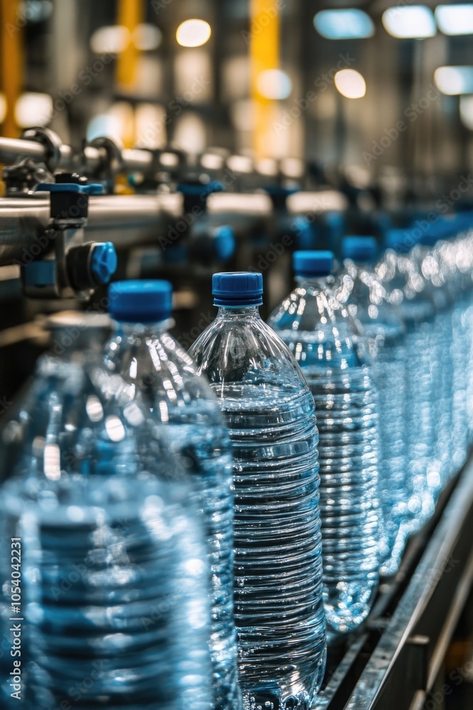 High-Tech Manufacturing Plant Bottling Purified Water in Hygienic Plastic Containers